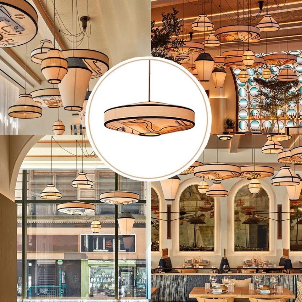 Candelabro colgante de tela de restaurante japonés al por mayor, pantalla Wabi-sabi colgante de pared artesanía de Vietnam