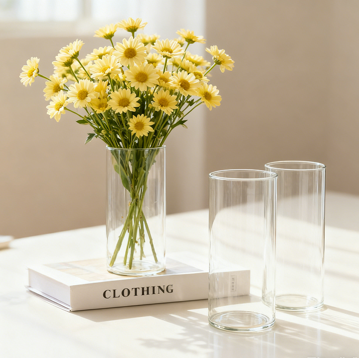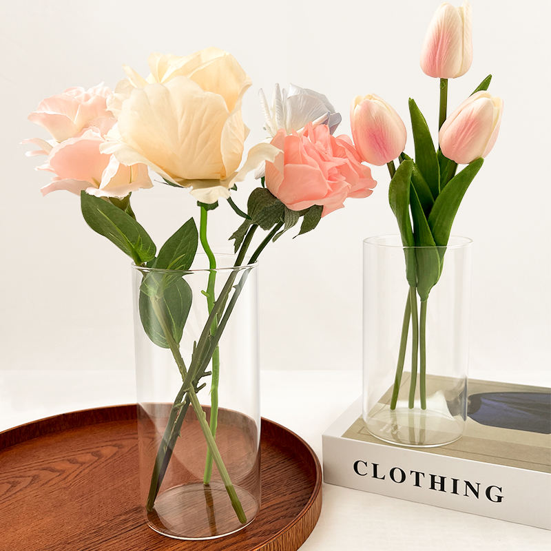 Jarrones al por Mayor Estilo Nórdico, Floreros de Mesa, Floreros Cilíndricos, Jarrones de Vidrio Transparente para Centros de Mesa de Boda