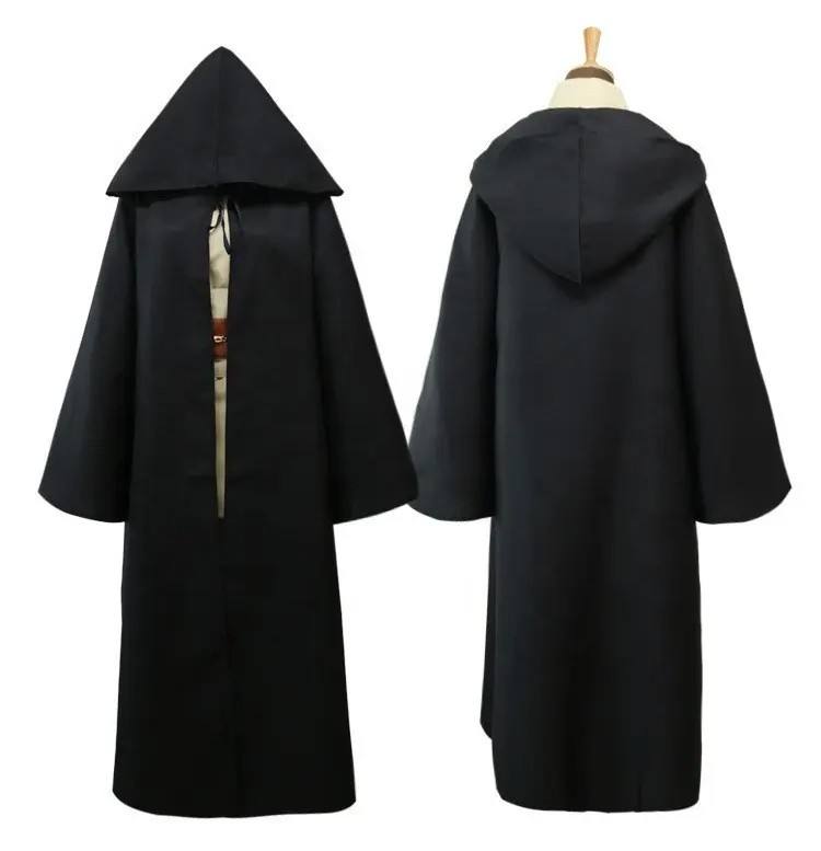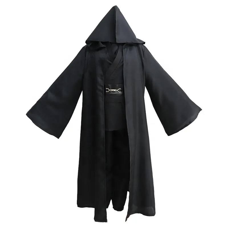 Venta al por mayor uniforme Jedi bata con capucha trajes de caballero túnica negra uniforme completo Halloween Darth bata con capucha capa disfraz de Cosplay