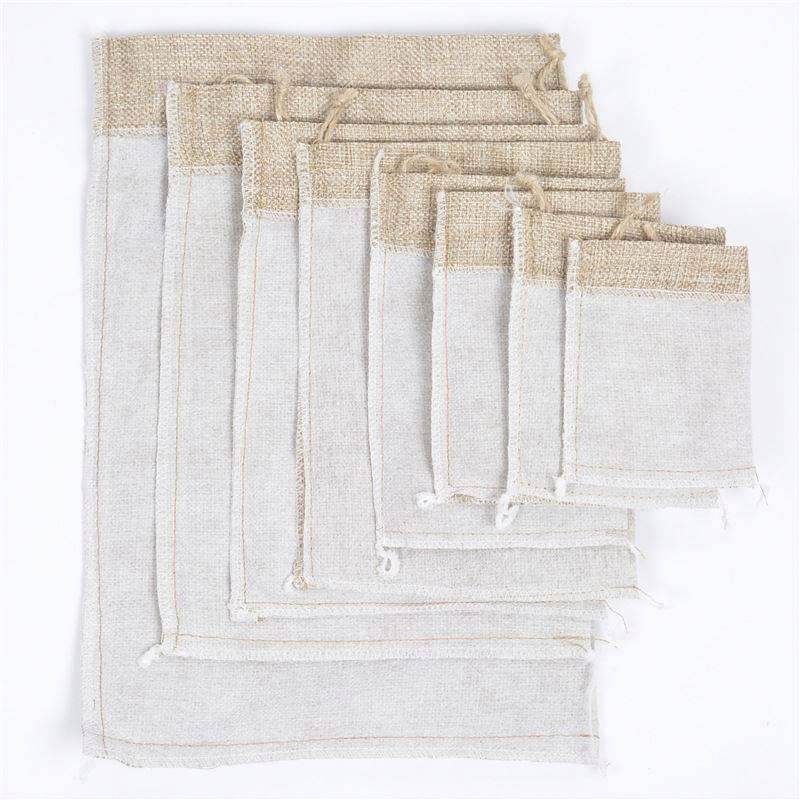Bolsa de yute con cordón de arpillera, bolsa de yute con cordón de algodón