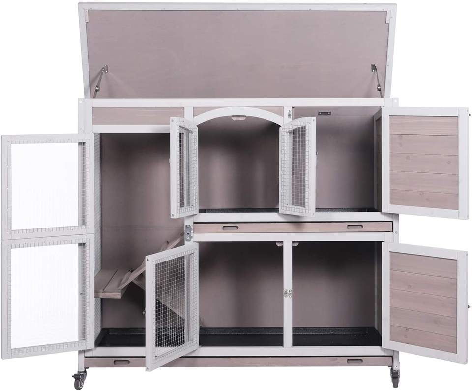 Venta al por mayor grande 2-Historia de la jaula de conejo con ruedas y rampa de interior y al aire libre para productos para mascotas