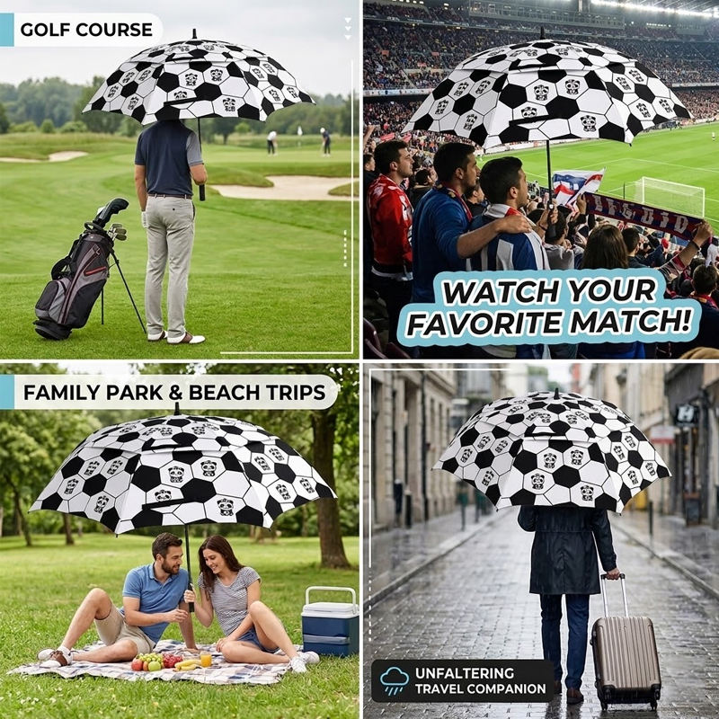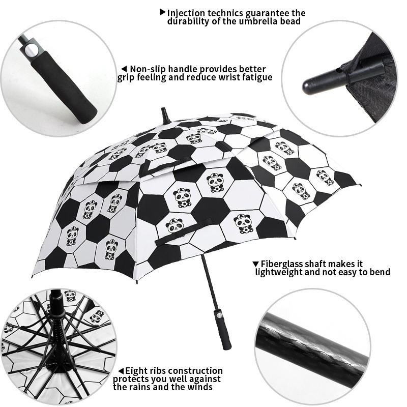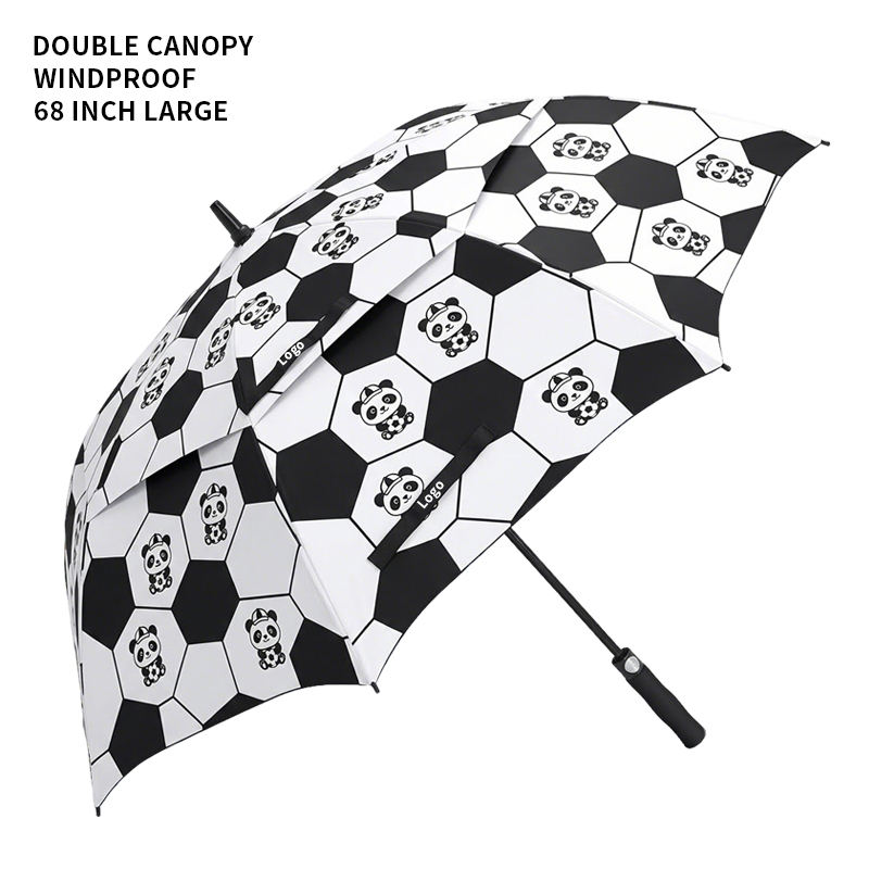 Paraguas de Golf Grande de 68 Pulgadas al por Mayor, Doble Toldo, Resistente al Viento, Varillas de Fibra de Vidrio Reforzadas, Logotipo Personalizado, para Exteriores