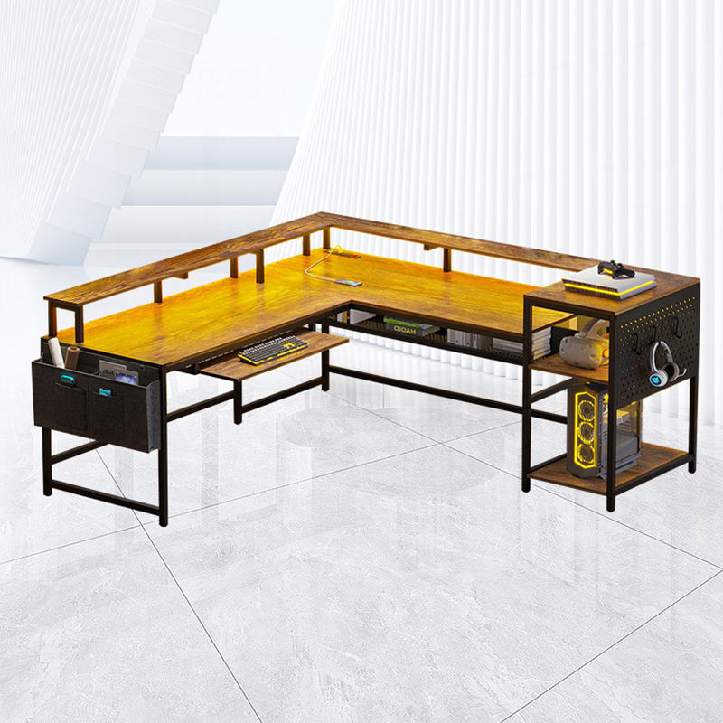 Venta al por mayor de escritorio de la computadora de esquina grande en forma de L PC Gaming Room Table con cajones de almacenamiento y estantes