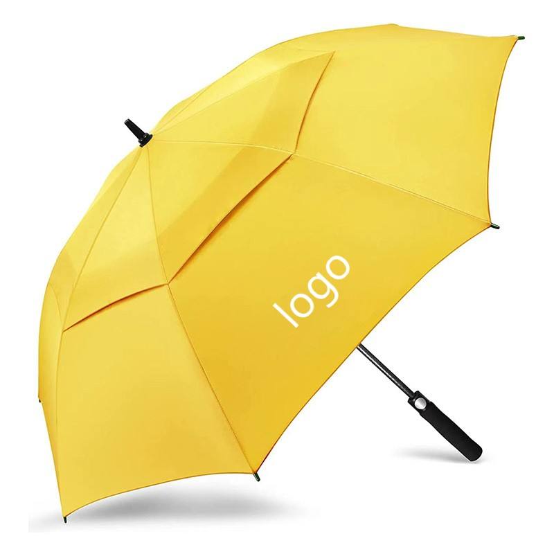 Venta al por mayor de paraguas grande con doble dosel ventilado a prueba de viento paraguas de Golf recto abierto automático personalizado moderno hierro adultos lluvia