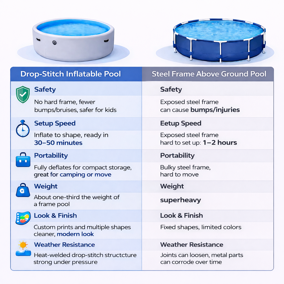 Durable, Respetuoso del medio ambiente, Plegable, Inflable, Ligero, Portátil, Resistente a los rayos UV