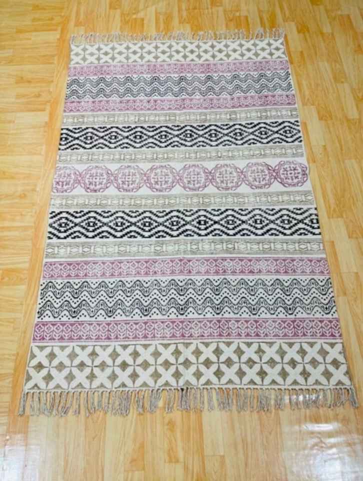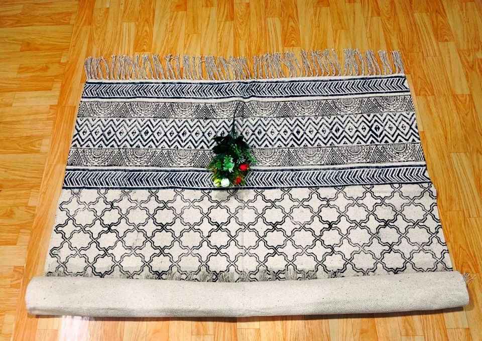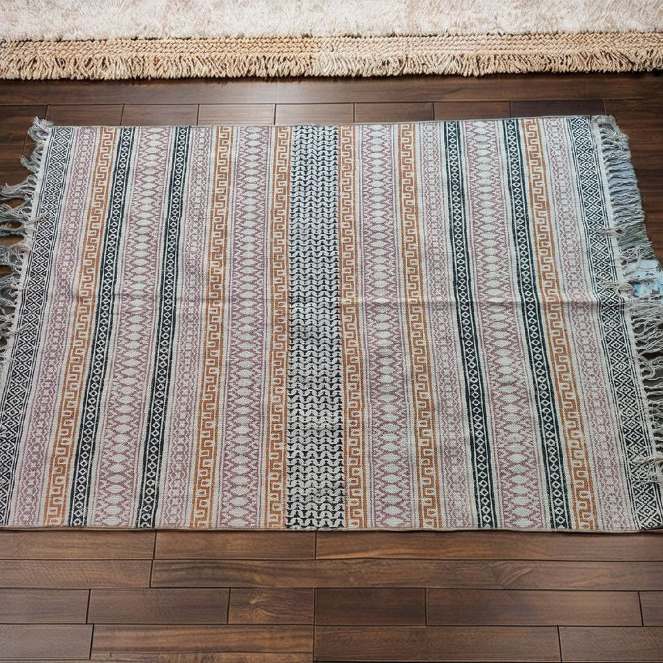 Alfombra Dhurrie Bohemia India Antigua Hecha a Mano, Tamaño Grande 4' X 6', Moderna, de Algodón Ecológico, Lavable