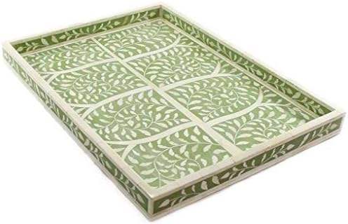 Bandeja para servir con incrustaciones de hueso de último diseño al por mayor, bandeja rectangular para servir comida casera con incrustaciones de hueso naturales hechas a mano de alta calidad