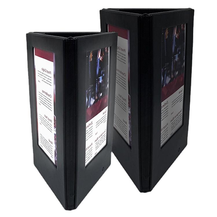 Venta al por mayor de cuero Cubiertas de menú Iluminación LED 3 Ver menú retroiluminado Exhibición de soporte de mesa