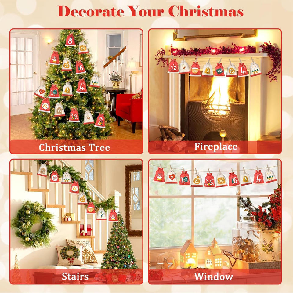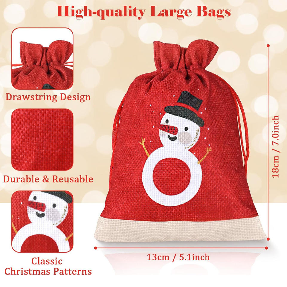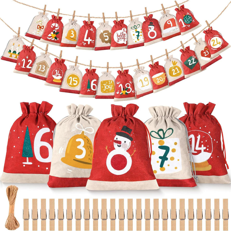 Bolsa con cordón de lino al por mayor, diseño transfronterizo para cuenta regresiva de Navidad, regalo de vacaciones de Adviento, dulces, suministros navideños