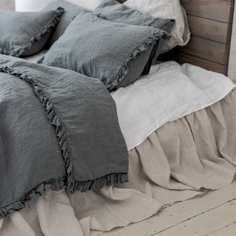 Juego de funda nórdica con volantes de lino Queen King Twin XL al por mayor con fundas de almohada de estilo rústico 200TC para el hogar, bodas, hoteles, hospitales