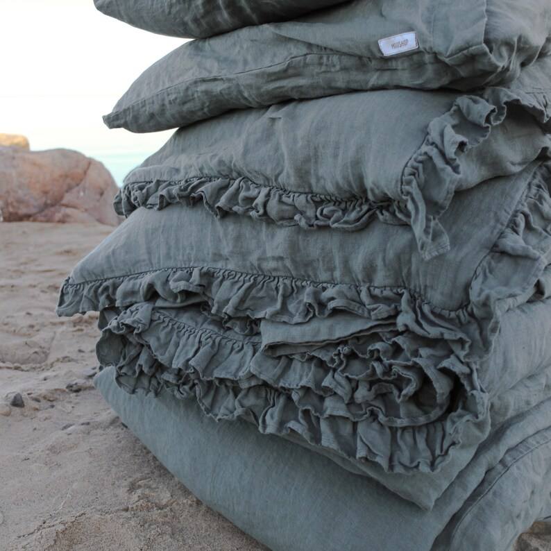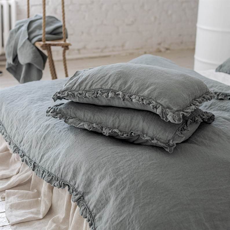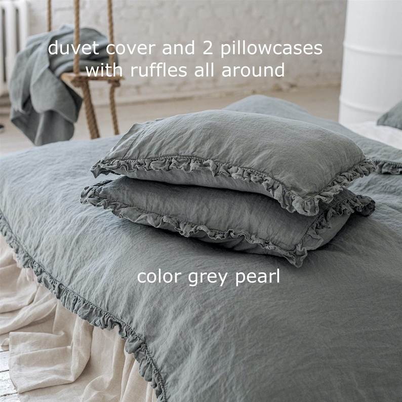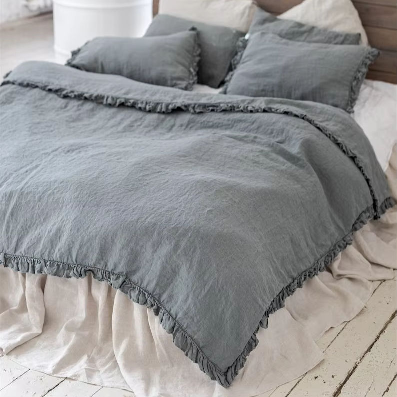 Nombre del producto:Conjunto de ropa de cama doble de lino con volantes