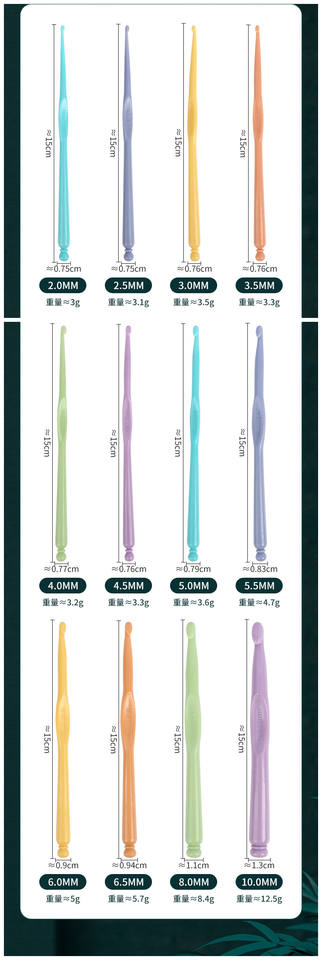 Tipo de material:ABS mango de color ganchillo gancho para tejer mantas
