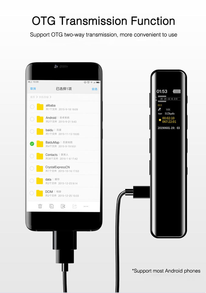 Grabadora de Audio de largo tiempo de trabajo OTG, compatible con archivos de grabación cifrado, VOX, grabadora de voz Digital, venta al por mayor
