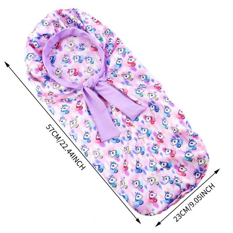 Venta al por mayor encantador patrón de dibujos animados impreso chico dormir gorro para el cuidado del cabello largo con banda ajustable gorros de pelo de satén sedoso