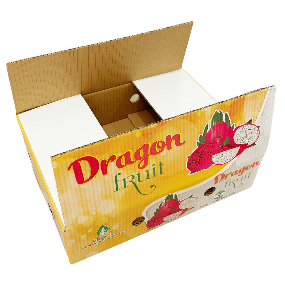 Caja de cartón de papel corrugado con etiquetas personalizadas reciclables ecológicas de lujo al por mayor para Harina de alimentación de fruta de dragón fresca