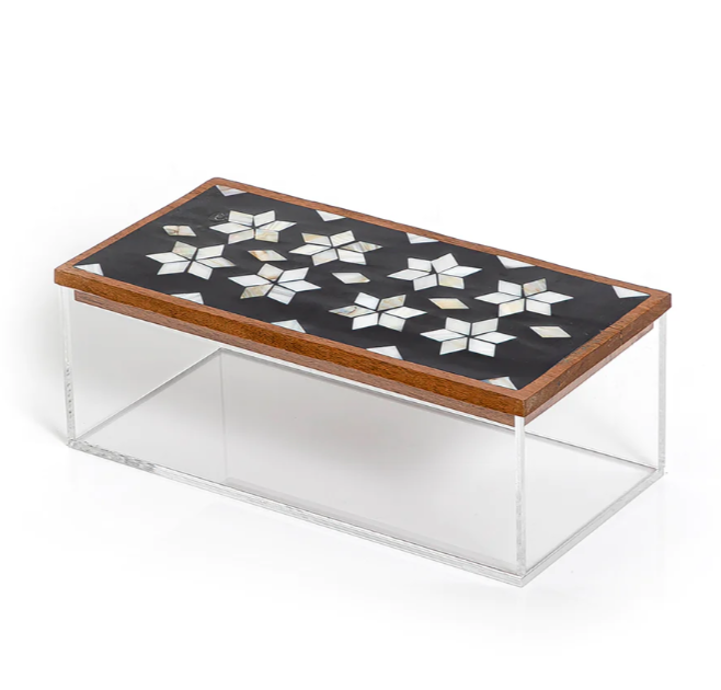 Holesale-caja de acrílico de nlaid, exquisito conjunto de nácar con cubierta de madera para vacaciones de amadan