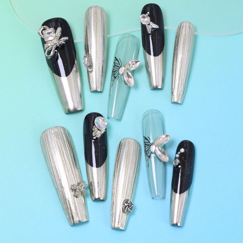 Uñas acrílicas de lujo hechas a mano al por mayor, uñas postizas acrílicas de cobertura completa, etiqueta privada, uñas postizas de alta calidad