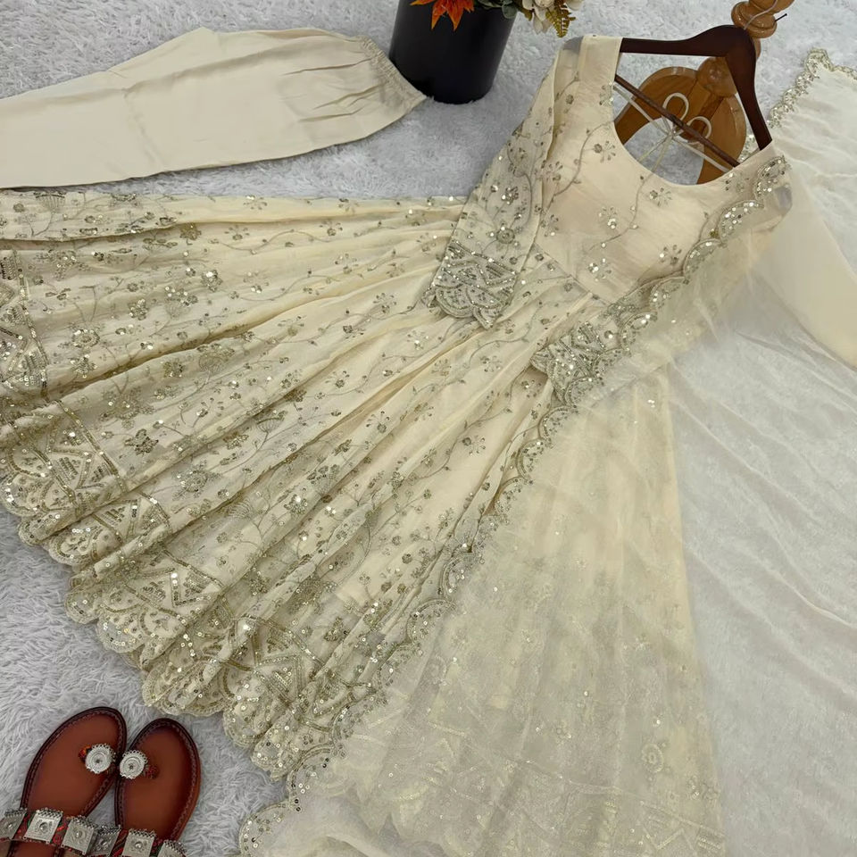 Vestido de gala Mal Chanderi con volantes, 12 metros de falda amplia, trabajo artesanal con espejos reales y conjunto de pantalón de microalgodón, venta al por mayor B2B