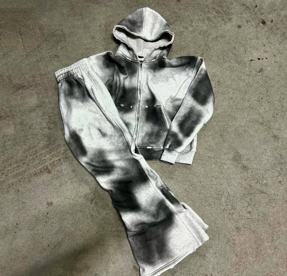 Venta al por mayor fabricación personalizada Boxy Fit de gran tamaño Vintage ácido sucio lavado desgastado Zip Hoodie Baggy Raw Hem Flare chándal