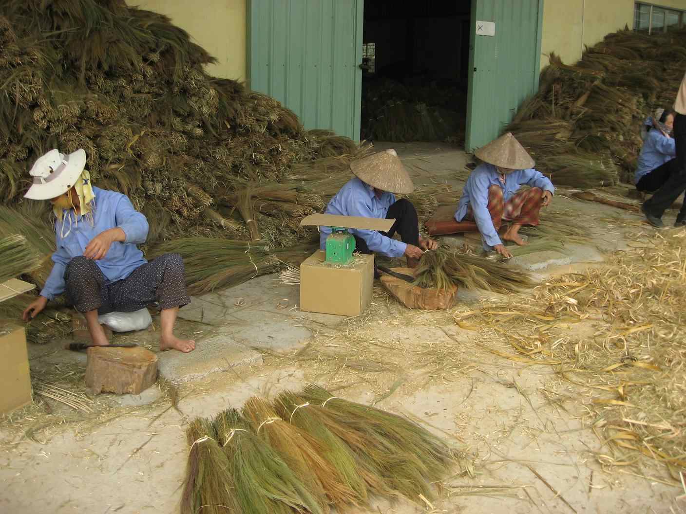 Paja seca arroz:Bonita escoba de paja de arroz con mango de madera.