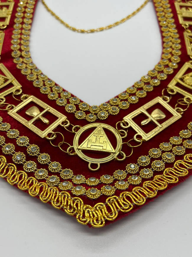 Nombre del producto:Collar de Cadena Masónica de Alta Calidad Chapado en Oro sobre Terciopelo