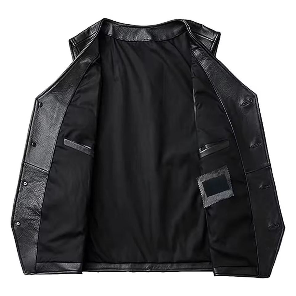 Venta al por mayor de hombres Racing Jersey Chaleco de cuero con cuello en V estilo occidental transpirable montar en moto Chaleco de invierno personalizado de cuero de vaca Biker Wear