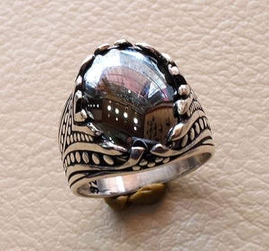 Anillo de Hombre al por Mayor, Nuevo Anillo de Hematita Natural Estilo Otomano, Joyería de Diseño Árabe, Anillo de Plata de Ley 925