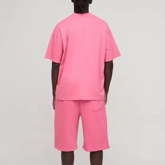 Conjunto de 2 Piezas para Hombre, Color Sólido, Camiseta y Pantalones Cortos Holgados de Verano, Algodón Transpirable y Cómodo