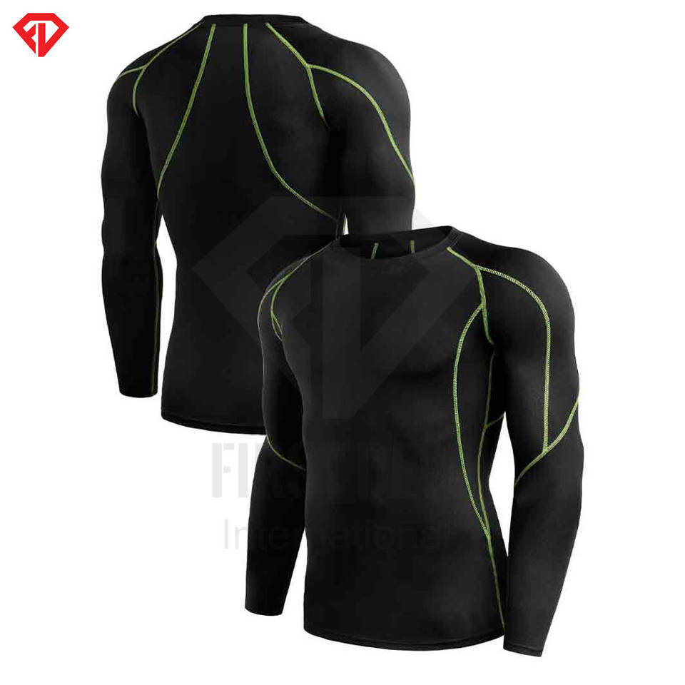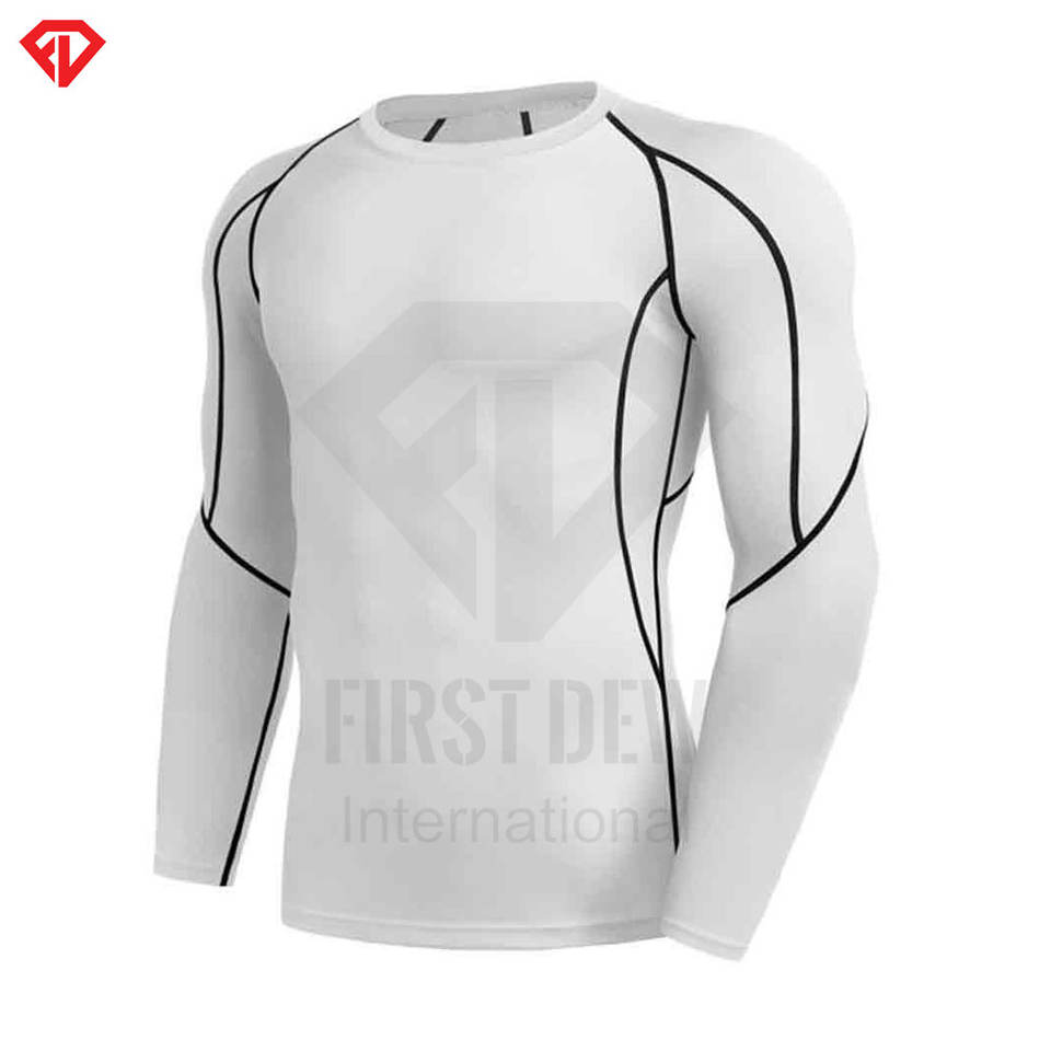Venta al por mayor camisa de compresión de los hombres logotipo personalizado impreso diseño de manga larga de calidad promocional transpirable desgaste camisa de compresión