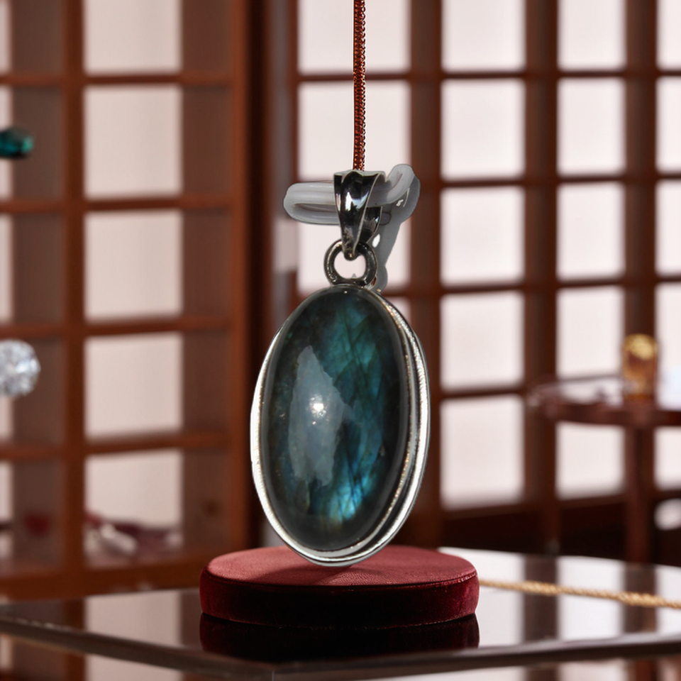 Colgante de piedra de cristal curativo 925 de cabujón redondo de labradorita Natural Popular para hombres al por mayor