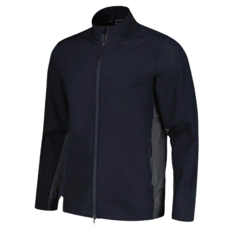 Venta al por mayor de los hombres chaqueta Softshell personalizable al aire libre a prueba de viento impermeable cremallera cierre cuello alto 100% poliéster