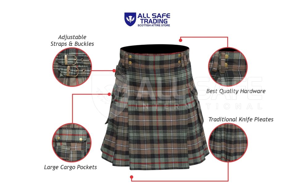 Nombre del producto:Venta al por mayor Mens Premium Utility Kilt Durable Fabric Multi Pocket Kilts