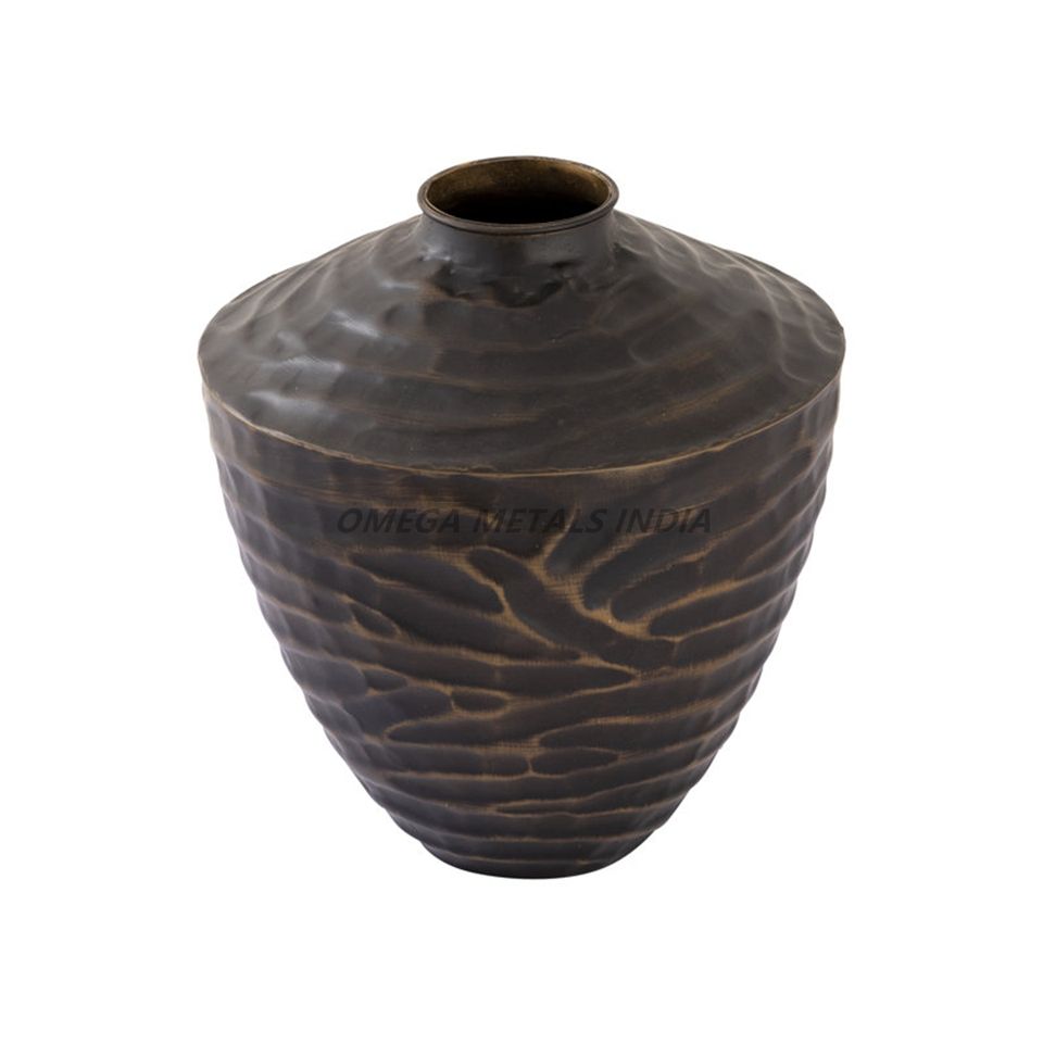 Juego de jarrones de metal al por mayor en color plata cepillada con forma de ánfora única y diseño rústico para decoración de granja