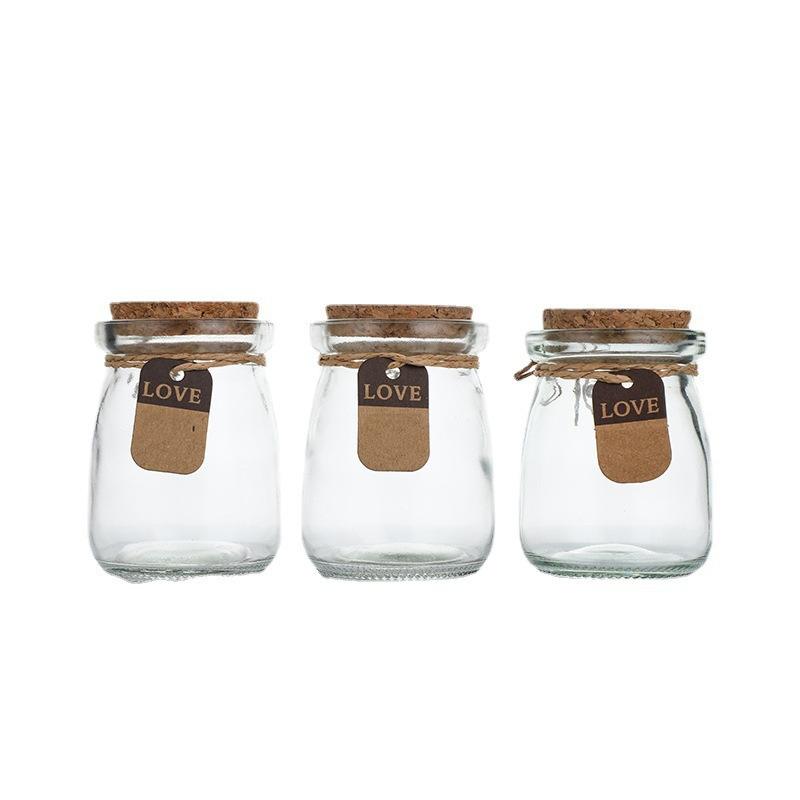 Venta al por Mayor de Mini Frascos de Vidrio de 100 ml Resistentes a Altas Temperaturas para Mousse, Yogur, Miel, Mermelada y Pudín, con Tapa de Plástico o Corcho