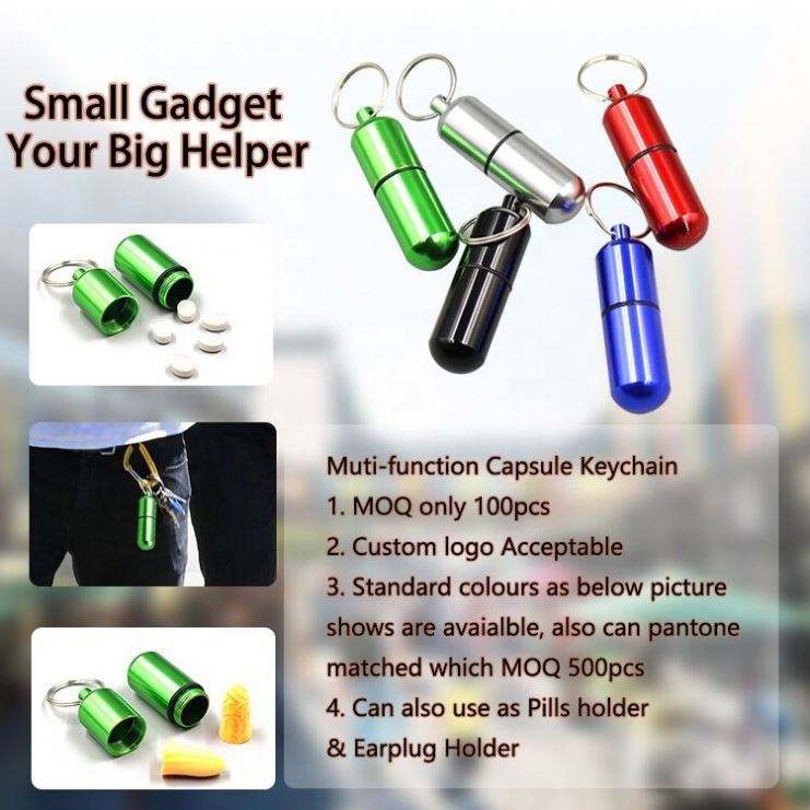 Llavero con Mini Contenedor para Pastillas, Botella Multifuncional, Llavero Metálico con Caja para Pastillas