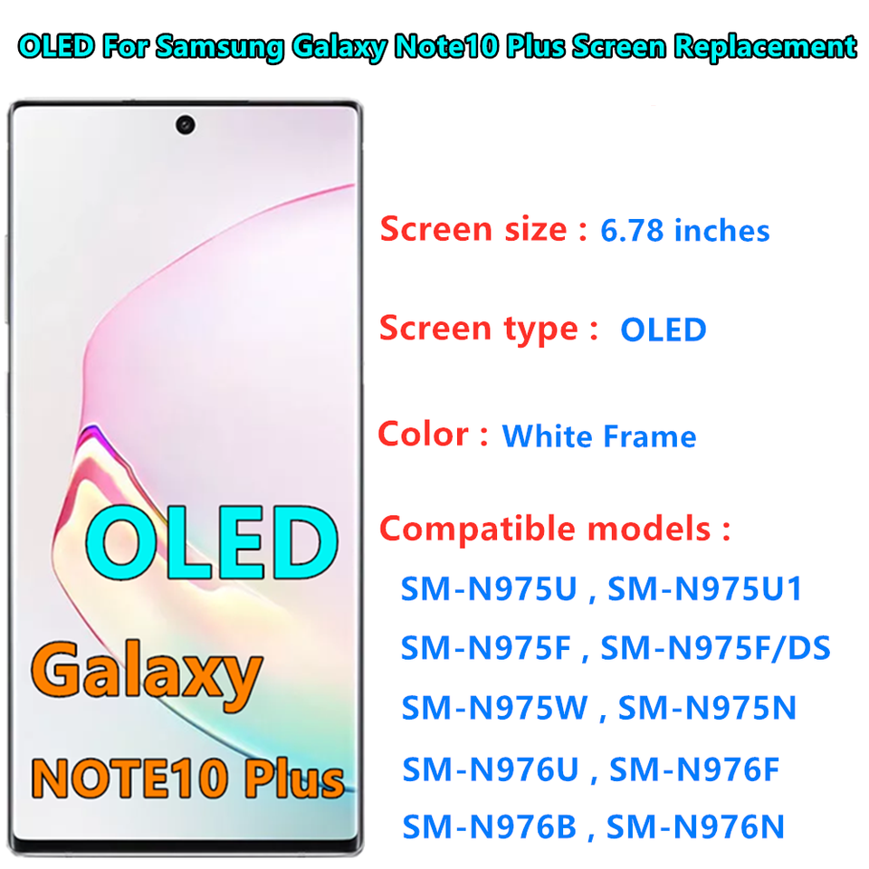 Venta al por mayor de teléfono móvil Display Note 10 + OLED Venta al por mayor para Samsung Note10 Plus Pantalla táctil de 6,8 pulgadas con pantalla 1440X3040 N975