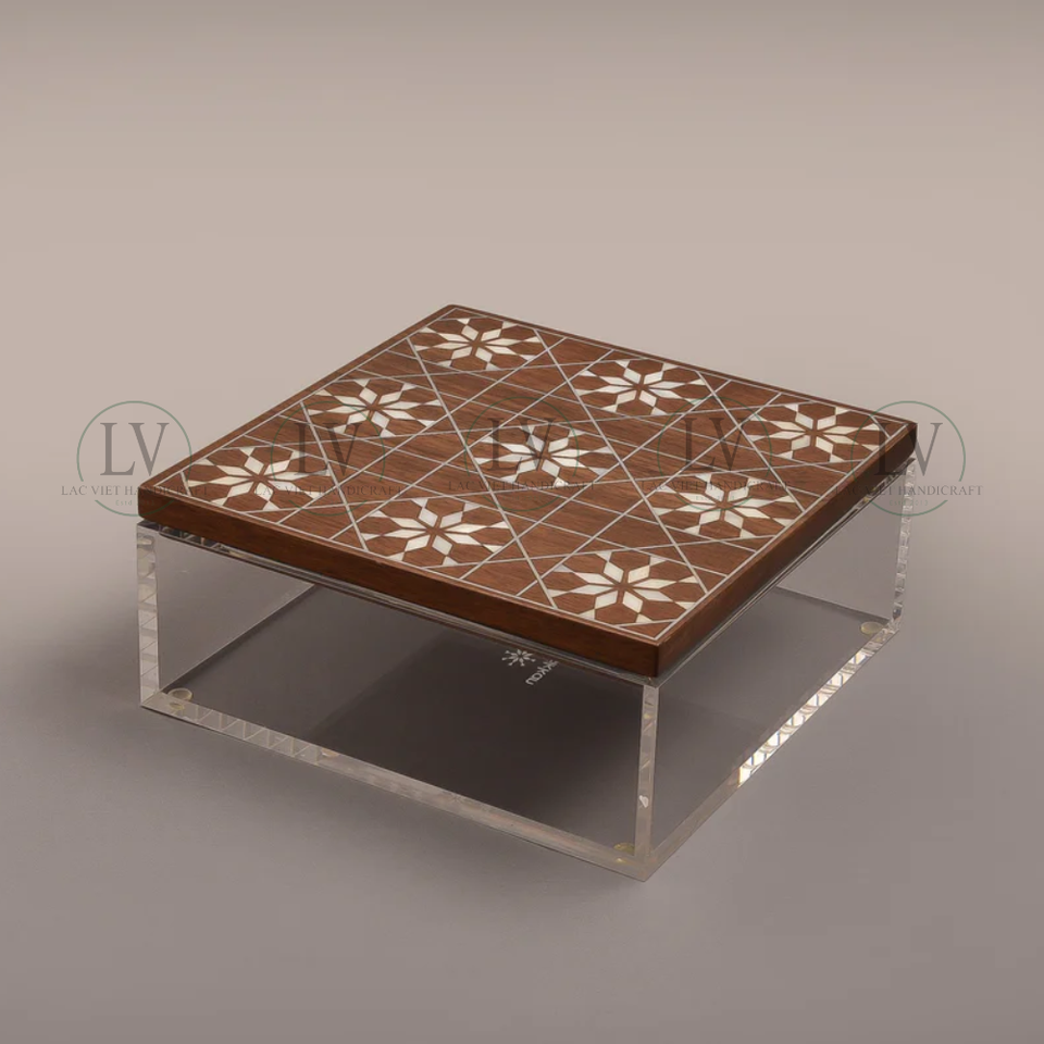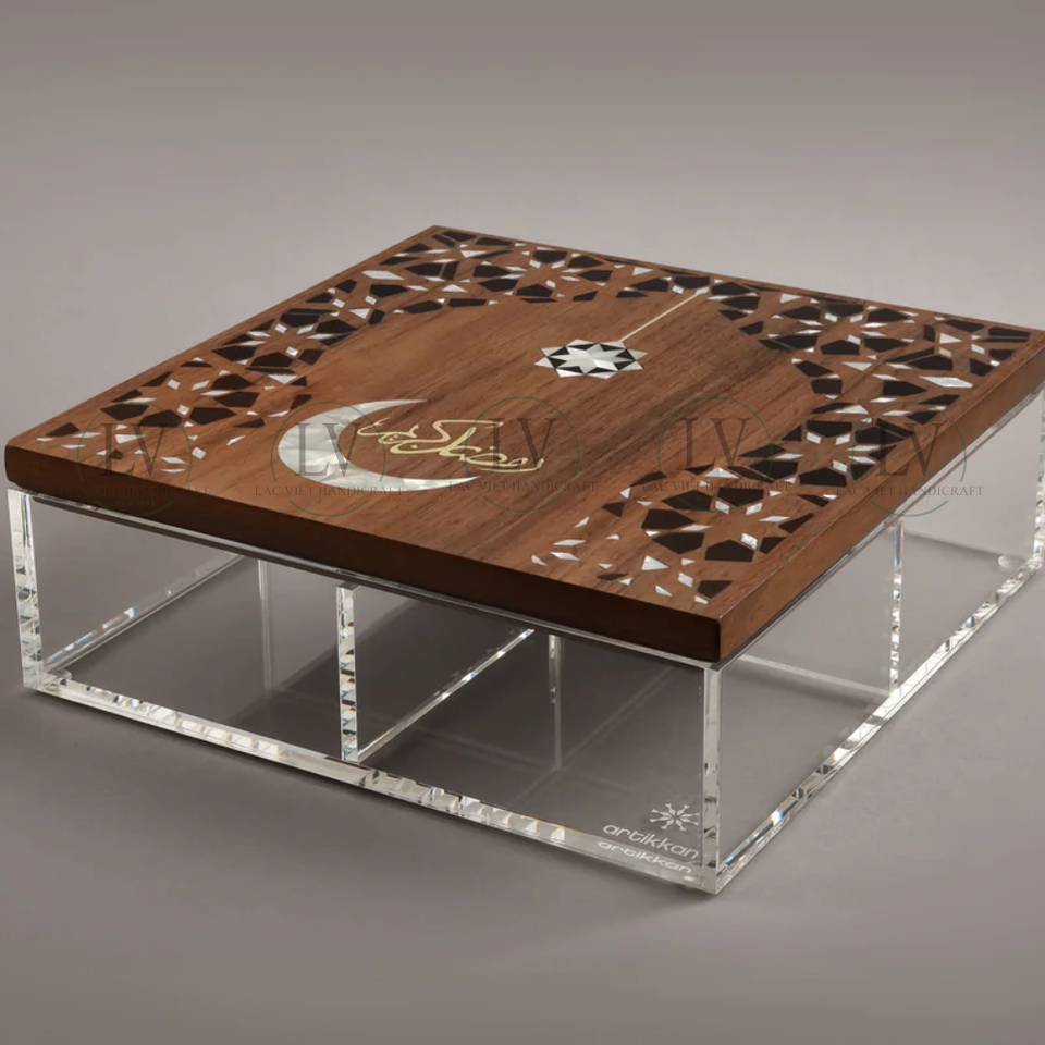 Nombre del producto:Caja de chocolate acrílico con tapa de madera