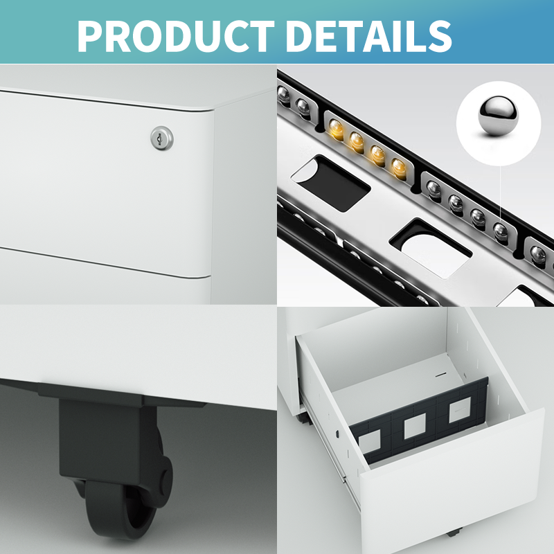 Archivador Metálico Moderno de 3 Cajones al por Mayor, Estructura Desmontable, Pedestal Móvil, Uso en Oficina, Hogar, Taller, Escuela, Ajustable