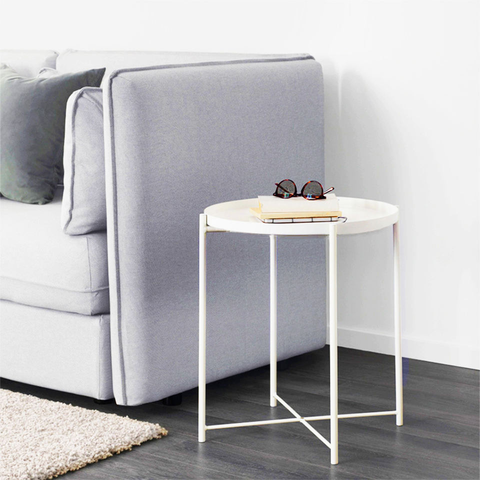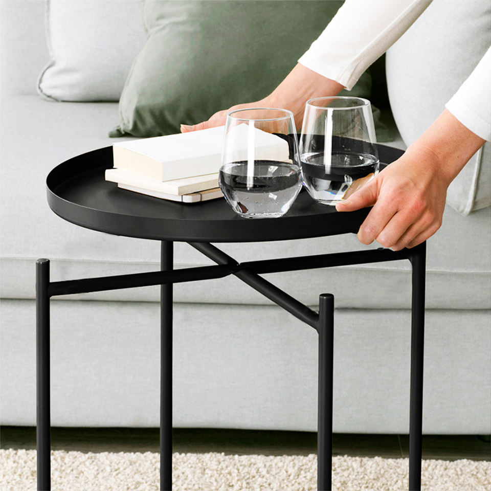 Mesa lateral de hierro nórdico para exteriores, moderna y plegable, personalizada, redonda, nuevo diseño, mesa lateral inteligente, venta al por mayor