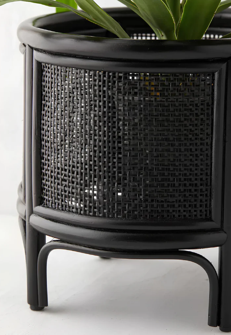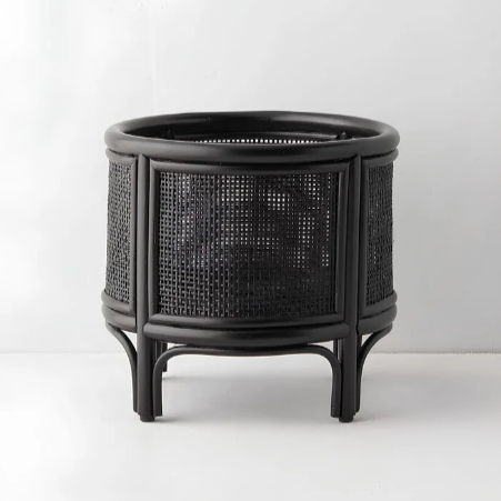 Maceta de ratán moderna con caña tejiendo maceta decorativa negra