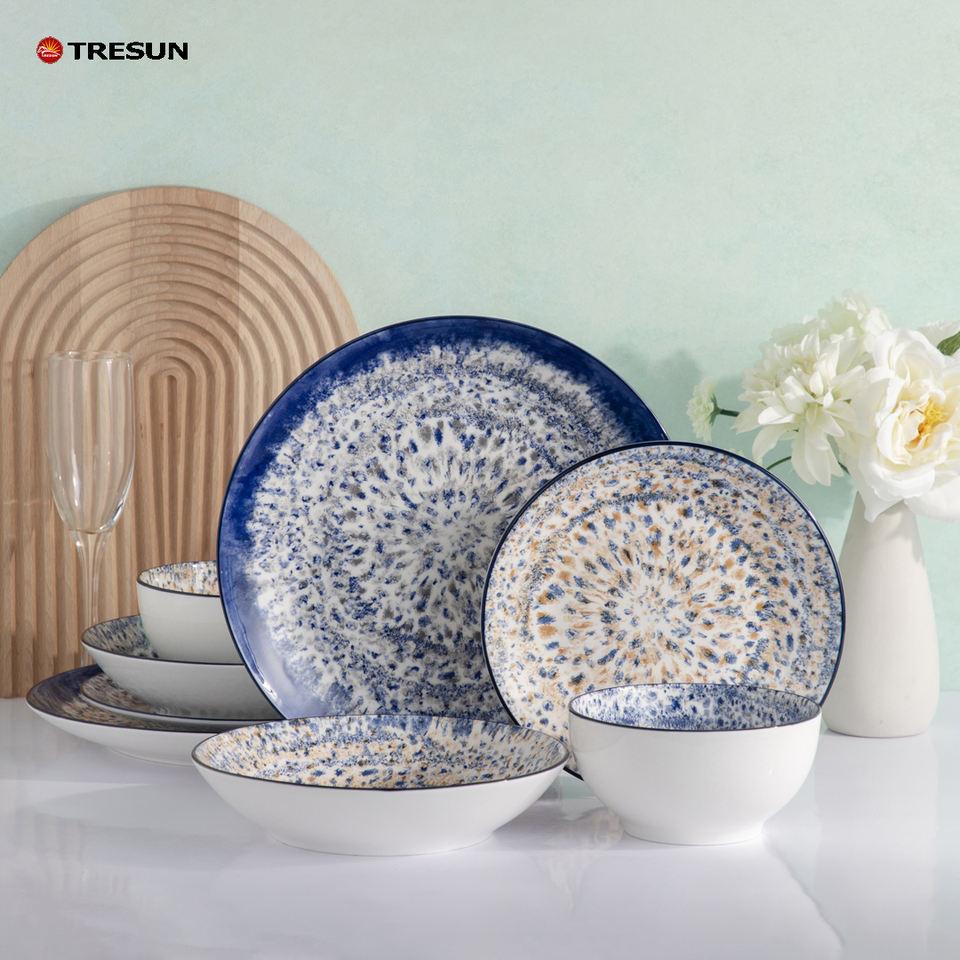 Venta al por mayor de platos de porcelana de cerámica de estilo moderno vajilla restaurante Catering barato característica redonda platos de cerámica