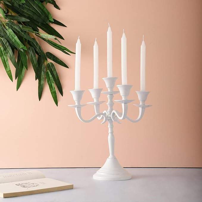 Candelabro Moderno de Metal Blanco al por Mayor, Candelabro Único de 5 Brazos, Decoración para Fiestas, Candelabro Creativo