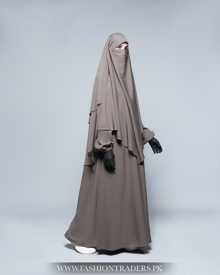 Nombre del producto:Abaya con mangas de globo y khimar de tres capas