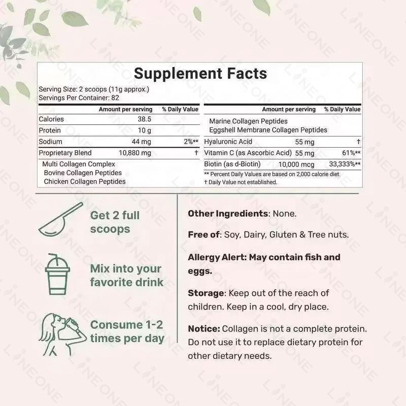Colágeno Multi-Spectrum al por Mayor con Vitamina C y Ácido Hialurónico para Apoyar la Salud de la Piel, Péptidos en Polvo
