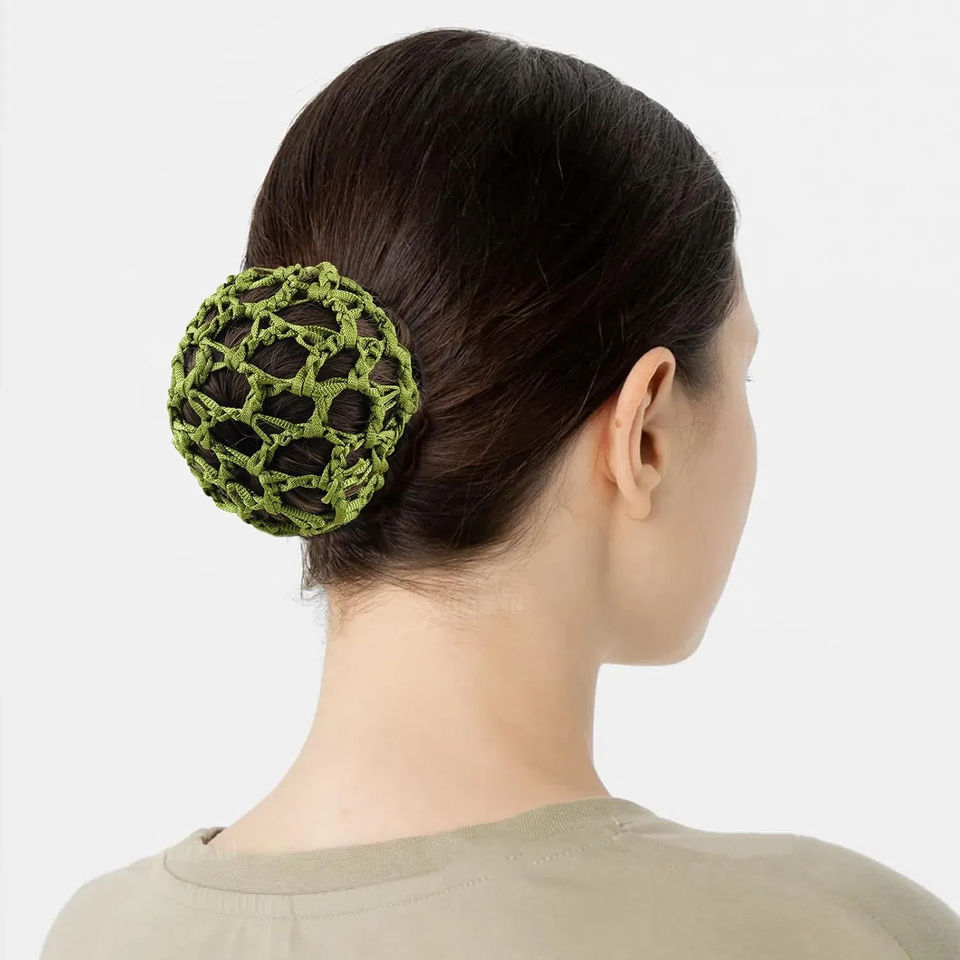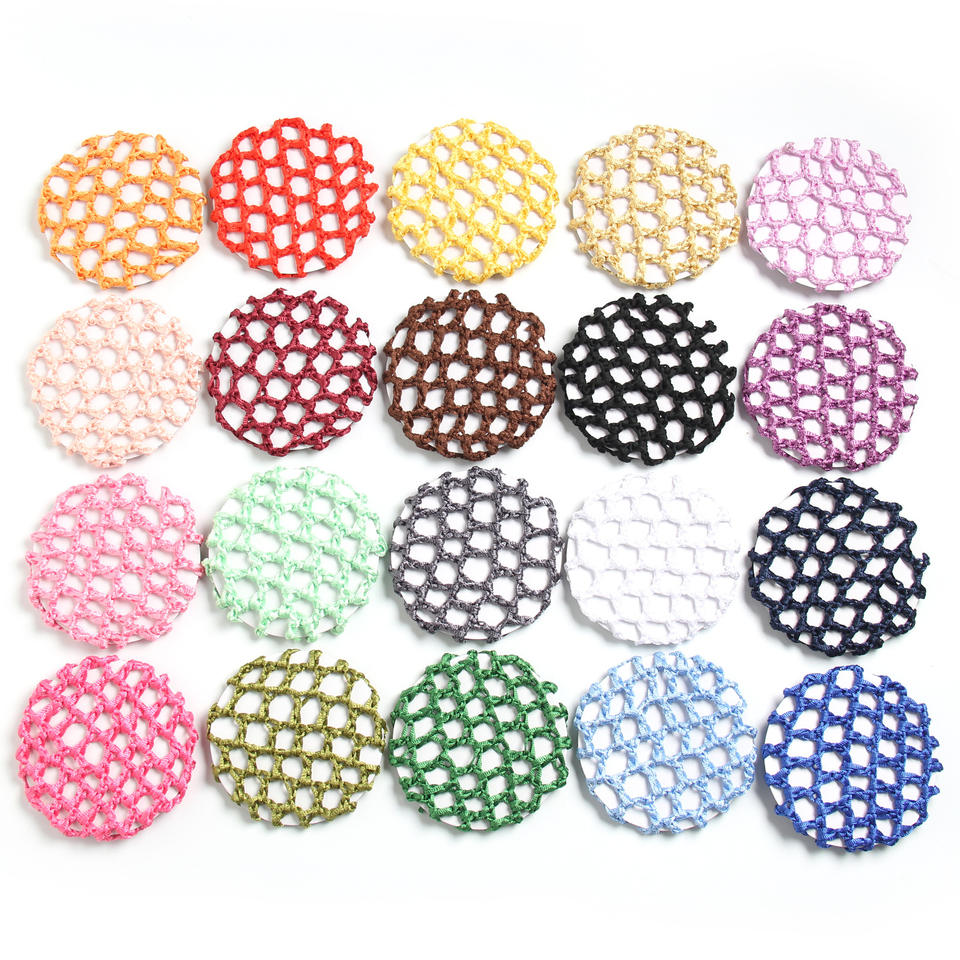 Venta al por mayor multicolor elástico Ballet Bun Crochet hecho a mano Hairnet poliéster Hair Snood Net Hairnet accesorio