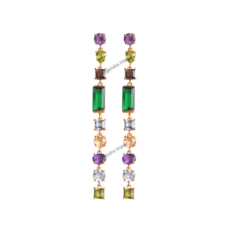 Pendientes de tuerca de boda chapados en oro de moda de Plata de Ley 925 hechos a mano, colgante de piedras preciosas multicolor, regalo de joyería al por mayor