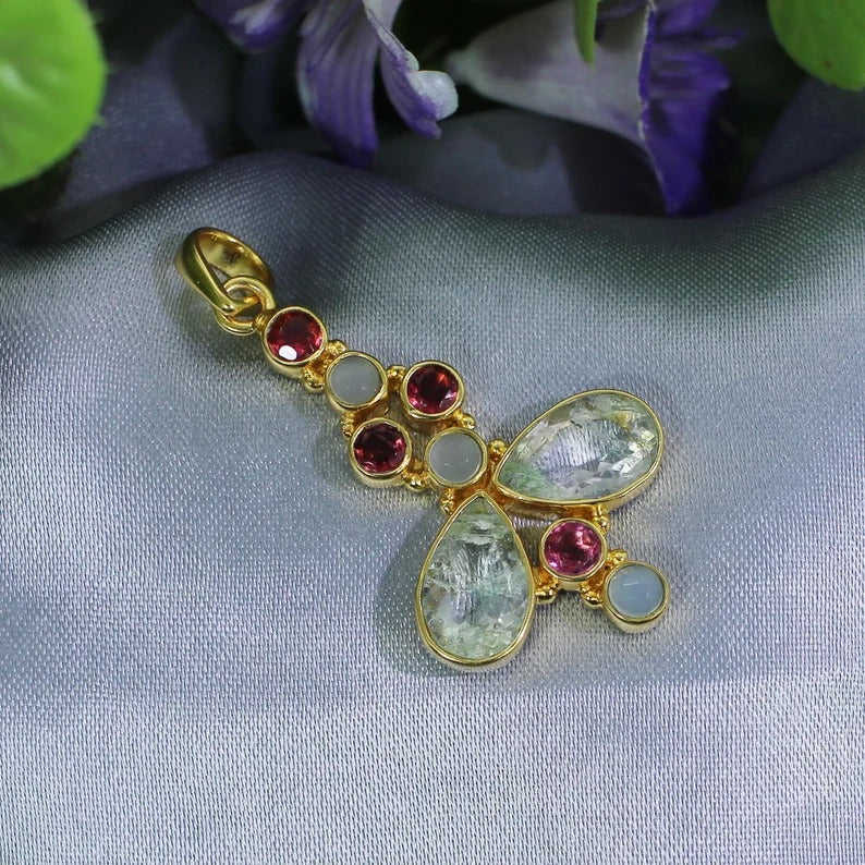 Aqua Crackle Glass,Pink Tourmaline Hydro,Aqua ChalcedonyGemstone