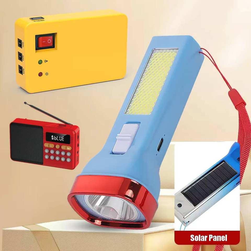 Sistema de Iluminación Portátil Multifuncional MPPT al por Mayor, Kit Doméstico de Iones de Litio de 10W con 3 Bombillas, Linterna Solar y Radio FM