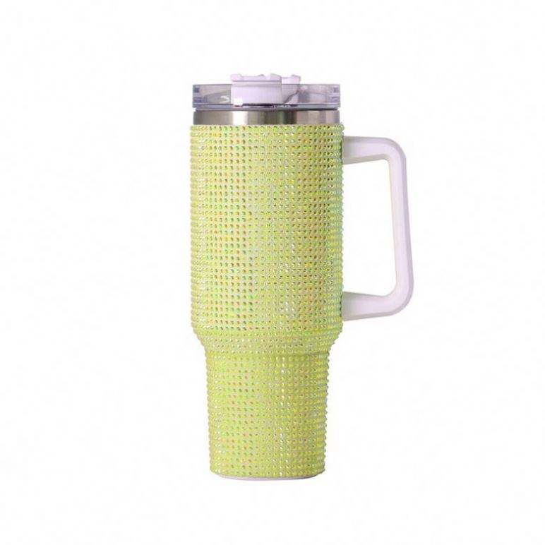 Venta al por mayor multicolor 40Oz Super Sparkly aislado al vacío Rhinestone envoltura completa vasos ostentosos con asa tapa y pajita
