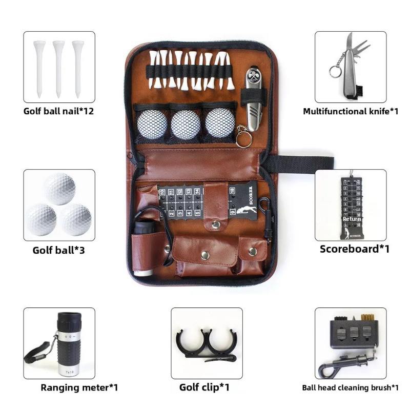 Bolsa de Herramientas de Cuero Multifuncional de Gran Capacidad para Accesorios de Golf, Fácil de Transportar (Accesorios de Golf No Incluidos)